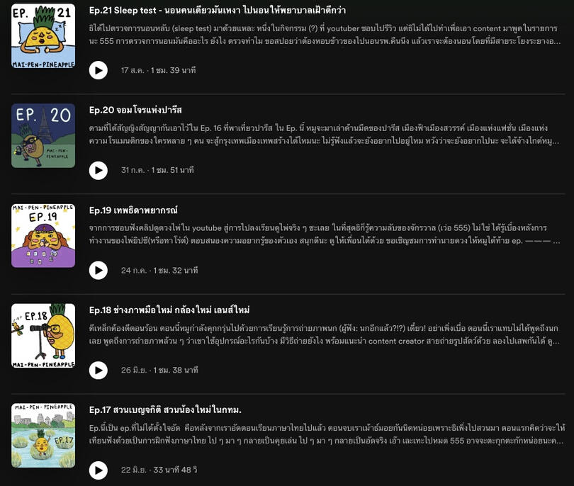 Podcast ที่จะมาแชร์เรื่องราวของคนที่ทำอะไรหลายอย่าง แต่ไม่เป็นสับปะรดซักอย่างว่าแล้วก็เตรียมพริกเกลือมาจิ้ม (จิ้มทำไม มันไม่ใช่สับปะรด) แล้วมานั่งฟังเรื่องราวอันหลากหลายของพวกเรากันได้เลยยย